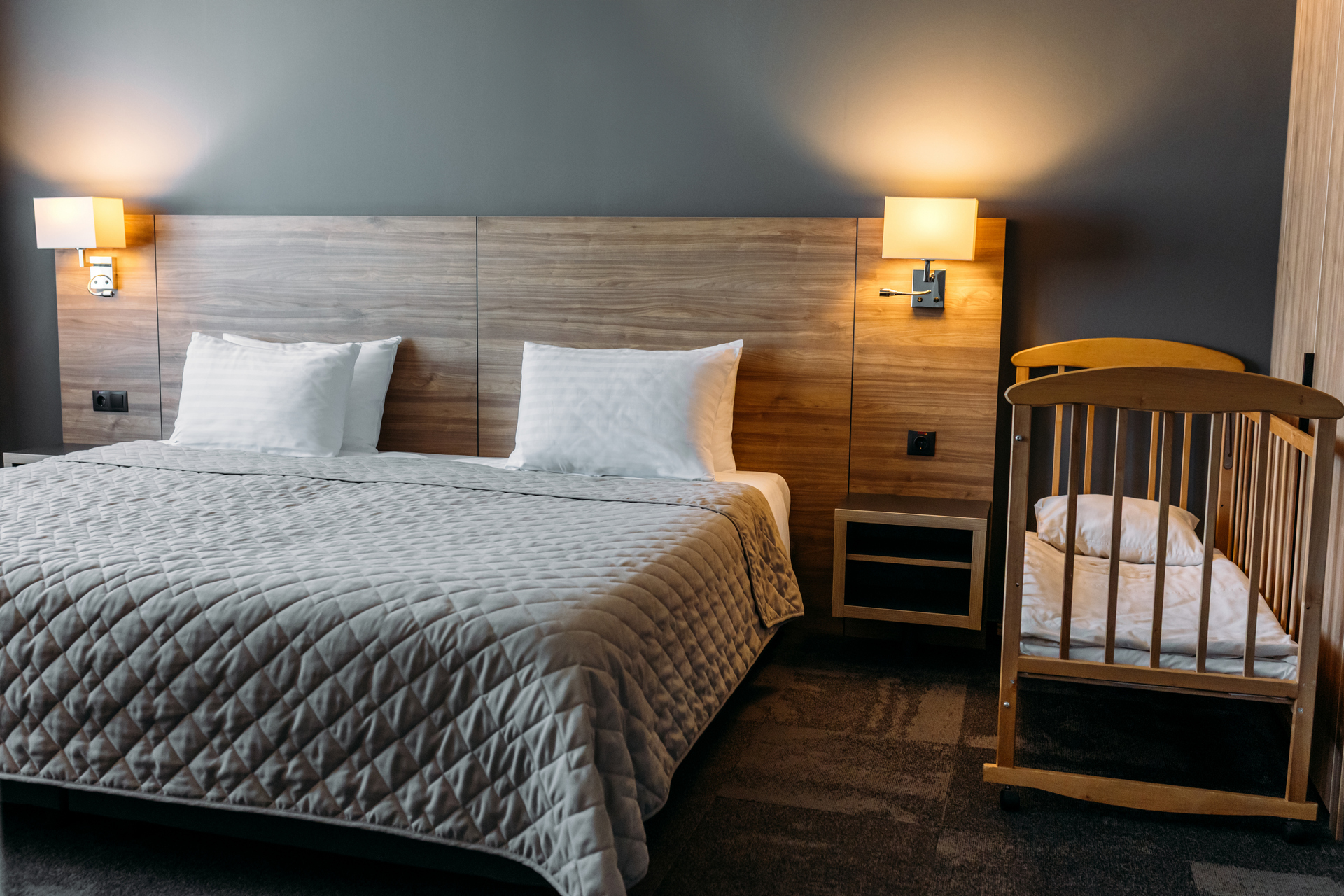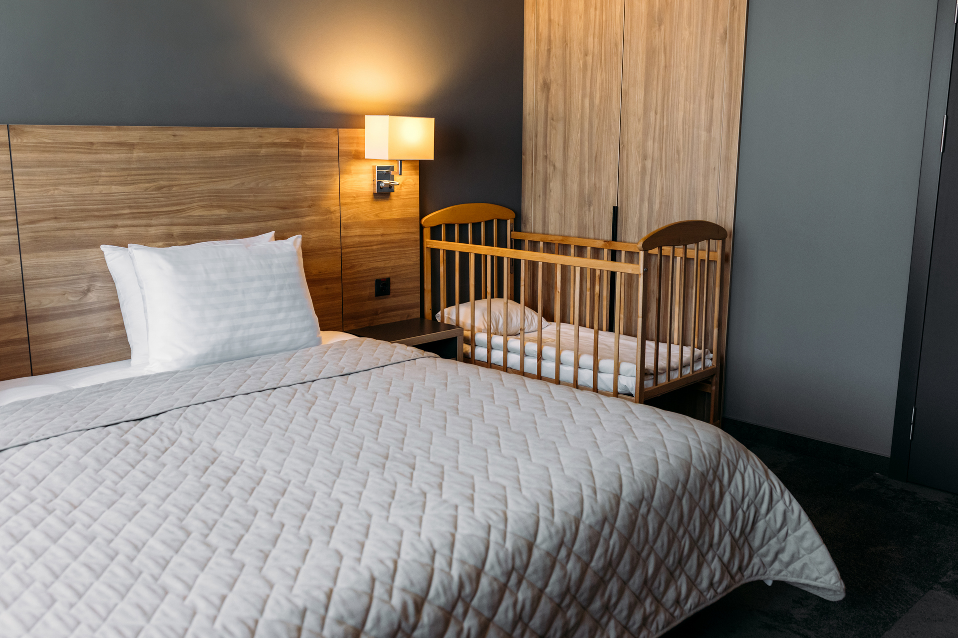 Изысканный и стильный двухкомнатный номер с отдельной спальней и гостиной, рассчитан на проживание одного или двух гостей. Станет отличным выбором для командировки, семейного отдыха или романтической поездки. Номера категории «Люкс» оснащены двуспальными кроватями в спальне, кондиционерами в обеих комнатах, диваном и журнальным столиком в гостиной.